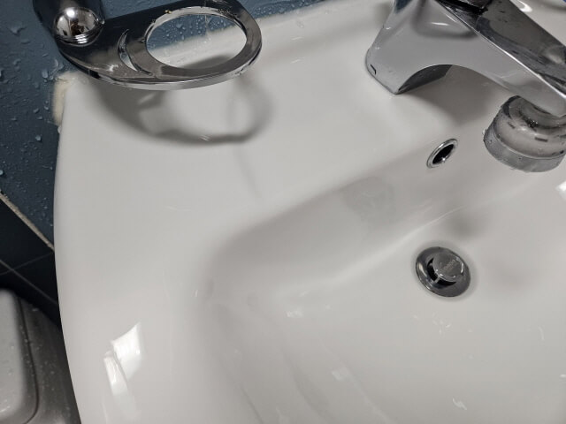 세면대도 마찬가지로 동일한 방법으로 청소를 해주었습니다. 수전이나 세면대는 물로만 해도 잘 씻겨 나갔는데 유리는 살짝 남아 있어서 스펀지로 다시 문지르면서 약품을 다 제거해 주었습니다.